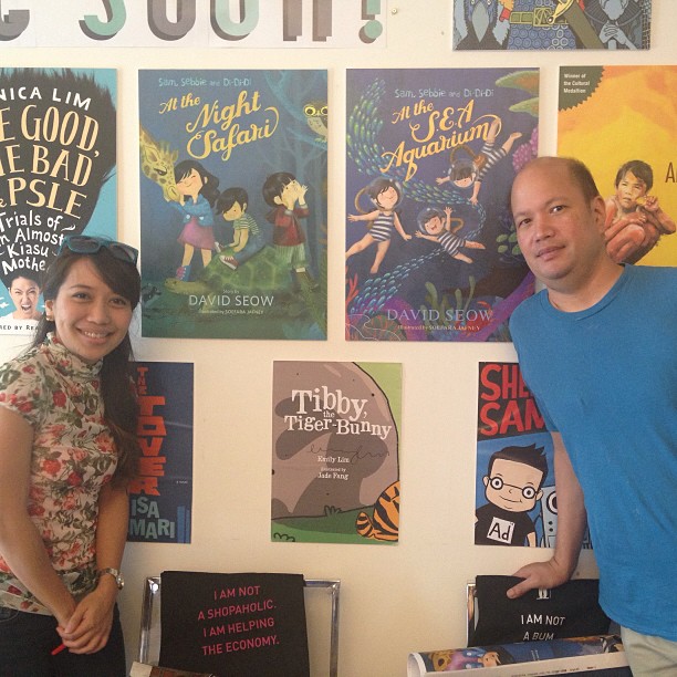 Soefara and I at Epigram (Photo: Epigram Books)A few days later Emma Nicholson, Kristina Thornton, Soefara Jafney, Kenneth Quek and I headed down to Epigram's office for their 2nd Annual Epigram Pop-Up Sale. Everyone from Epigram was there: Sheri, Jason (author of the popular Bo Bo and Cha Cha series), Ruth, Ilangoh, Christine and Epigram boss Edmund Wee. If you haven't been to a pop-up sale before, I highly recommend it. You can buy great books at terrific prices. Unfortunately At the Night Safari wasn't back from the printers in time, but I still had a great time and I bought a couple of books. I should have brought more cash with me though, then I could have bought more So look out for the next Epigram pop up sale and don't miss it!