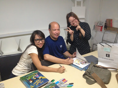 So Sheri told me on Friday that advance copies of the book were finally in. YAY! So I headed down first thing Monday morning to sign some copies for reviewers and to pick up my advance copies. I am so happy with how the books have turned out. BIG BIG BIG thanks goes out to Sheri for all her hard work (which includes putting up with me), Soefara for her amazing illustrations, Edmund for signing me up and everyone at Epigram: Ruth, Ilangoh and Christine, etc, etc and everyone who has bought them and will buy them.:) THANK YOU.