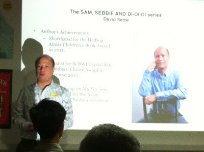 Braving the deadly haze that has engulfed our country, I risked life and limb to head to the Epigram Sales Conference on Friday to talk briefly about two of my Sam, Sebbie and Di-Di-Di books that will be republished by Epigram before an audience of librarians, book buyers and publishing industry big wigs. The things I will do for my craft!My nerves began to kick in. I hate getting in front of an audience to speak about my books. It terrifies me and the only kind of audience I feel comfortable in front of is the kind that requires afternoon naps and diaper changes. In other words either the very young or the very, very old. Thankfully Emma and Ken were in attendance so that was reassuring.