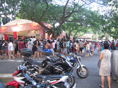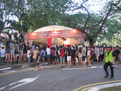 Ramsay departing in his SUVSo today the big event rolled around and I decided to high tail it to Newton Hawker Centre to see I could snag one of the 1,000 passes that would enable me to sample Ramsay's culinary attempts at mastering local cuisine.