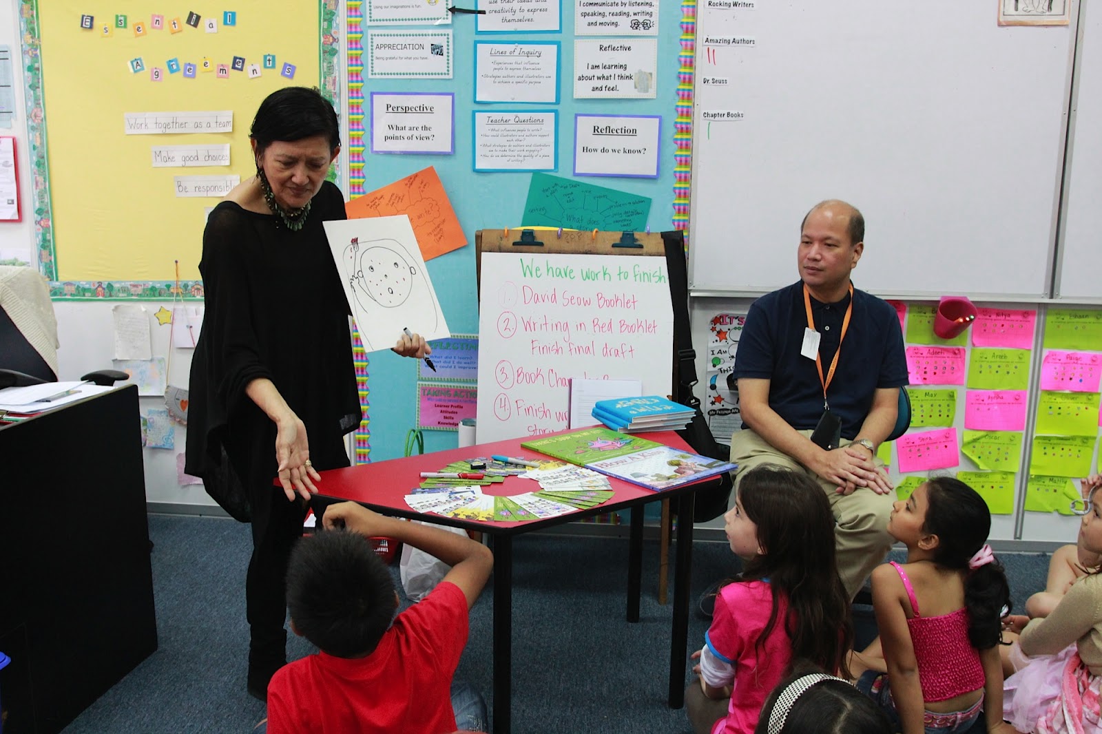 Me, Auntie Susanna, Mick SmithThis past week the talented Author/Artist/Illustrator Susanna Goho-Quek and I were thrilled to be invited to the International School Singapore and the Overseas family School for school visits. The International School Singapore was our first stop where we were met by the affable Mick Smith whom I met last year during my first visit to the School. Mick will be moving to Africa after the end of the school year, It was nice working with him and we wish him the very best as he embarks on his African adventure.