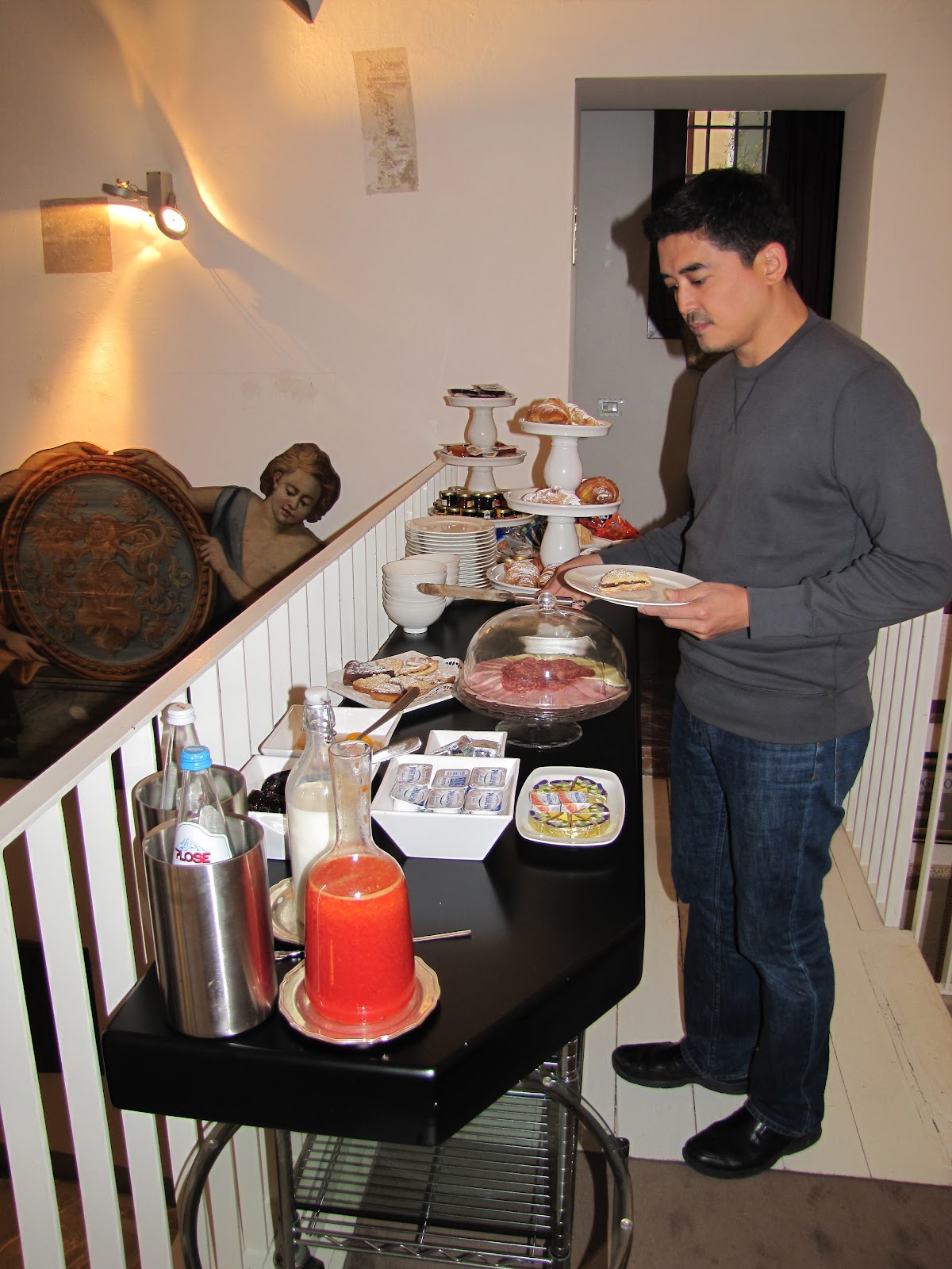 We awoke in the wee hours of the morning. Ah, the joys of jetlag. Kenneth was already hard at work. I really don't know how he does it. Then as day light dawned, we got ready and headed down for breakfast before heading out for the first day of the fair.