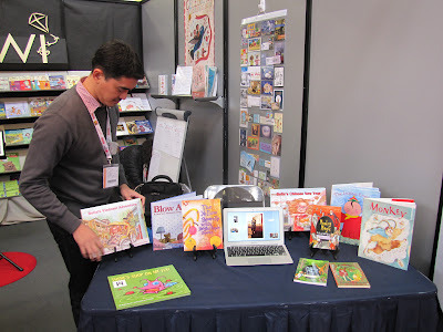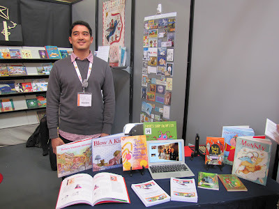 So Kenneth set up the Singapore Showcase at the SCBWI booth on the second day of the fair and as you can see he did a bang up job and attracted curious onlooker. I'd like to say that my books had something to do with it, but the reality is that they didn't, why would they?