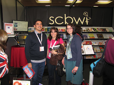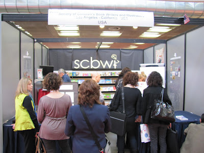 Once again we caught a cab and the fair ground was packed with people lining up for tickets. I was grateful that we had booked online and had our fast track entry. All we had to do was pick up our badge holders. Once that was done we headed past the Illustrators' wall and straight to the SCBWI booth where Kenneth was scheduled for the first of his many meetings.