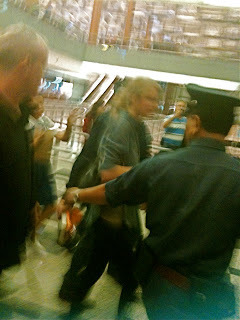 "Don't make it obvious," they warned me. Ok I'm not exactly subtle but I held the urge to talk to him and stayed rooted to the spot. Within half and hour the plane landed, the passengers streamed to the baggage carousel. The fans screamed...a blonde lady turned and stared, bemused. I didn't have my glasses on and I thought she didn't look too happy.
