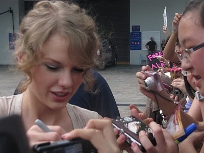 Taylor Swift (Photo: Manfred Kueh)I then said something cheesy and something he must hears the whole time and which is so cliche but which I sincerely mean: "You must be very proud. "Mr Swift smiled silently. But let's face it, he and Taylor's Mom are exceptional people and parents to have raised a gracious, kind, classy and talented young lady who is successfully navigating the treacherous and turbulent waters of fame and celebrity and who undoubtedly will go on to even greater heights - No that's not hyperbole!I ventured back to the throng to try and get a picture, but it was futile. Taylor signed for everyone and then it was time to go. The Swifts got into the transport. Taylor surrounded by her minders and trailed by her fans walked swiftly, pardon the pun, to the car and with a last wave, she was off. Now, I only wish I would have bought concert tickets in time! We need a larger concert venue, Singapore!