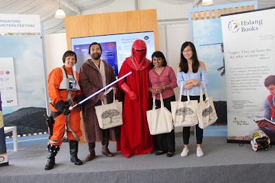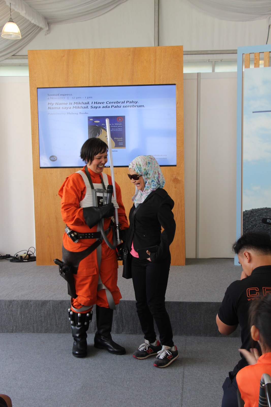 Now I attended the "My name is Mikhail. I have Cerebral Palsy" launch at the Singapore Writers Festival recently. And it's needless to say it was a uniquely Hidayah Book launch. She was dressed in a strange orange get up, which I initially assumed was because all her clothes were in the laundry and this was the only clean outfit she had around. I was mistaken. She was dressed as Jaina Solo, an X-Wing pilot, and Han Solo's daughter. Read on and you'll find out why.