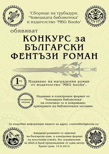 Списанието на твърдите фантазийните любители в онлайн пространството Сборище на трубадури, уникалната книгообичаща, книгоправеща и книгоразпространяваща общност Човешката библиотека и най-младото и активно издателство за фентъзи в България MBG Books обявяват всенароден куест за откриването на истински добрия български фентъзи роман , дългоочаквания отговор на вълните чуждоезични очилати магьосници, блестящи вампири и безумни асасини, нападнали ни в последните десетилетия, който за по-комуникативно ще наричаме КОНКУРС ЗА БЪЛГАРСКИ ФЕНТЪЗИ РОМАН.