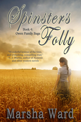 About MarshaThis Saturday, November 10, author Marsha Ward is celebrating the release of her fourth novel in the Owen Family Saga, Spinster’s Folly. She’s hosting a Book Release online at Facebook,with prizes, pop quizzes, and other follies. That day is Marsha’s wedding anniversary, chosen because all the troubles that her female character, Marie Owen, goes through are based on her desire to be married before she gets too old.
