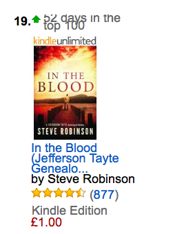 I was very exited to see them shoot up the charts when the promotion began. Right now, In the Blood is in the UK Kindle Store top 20, and the rest of the books aren't far behind it.The series is highly rated by Mystery lovers around the world, who have collectively given the series an average rating of 4.4 out of 5 stars after thousands of reviews. If you've not read them yet and think you might like to follow JT as he digs up the past, there's no better time to try them.