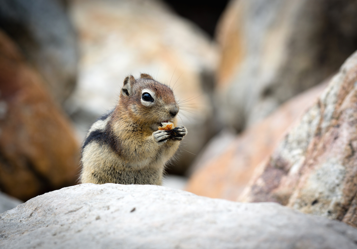I thought this was a chipmunk at first, but it's a ground squirrel.I saw a chipmunk later in the same area, but couldn't geta photo. It was much smaller and with more stripes.Canon 135mm f2 lens, shot at f6.3 for 1/200sec.
