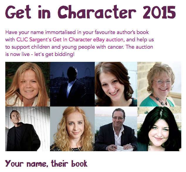 The date has been set for the 10-day 'Get in Character' eBay auction, where authors are helping to raise funds for this very worthy charity, and winning bidders get to have their name, or the name of a loved one, immortalised in the author's next book. The auction starts at 8pm on Thursday 26 February, and I'll be posting a special blog soon with more information and links when the auction goes live. I hope you'll drop by and make a bid. In the meantime, here's a LINK to the CLIC Sargent website where you can find out more, and see the list of all the authors taking part, which includes Lee Child, Jodi Picoult, Peter James, Jojo Moyes, and Andy McNab, to name just a few.