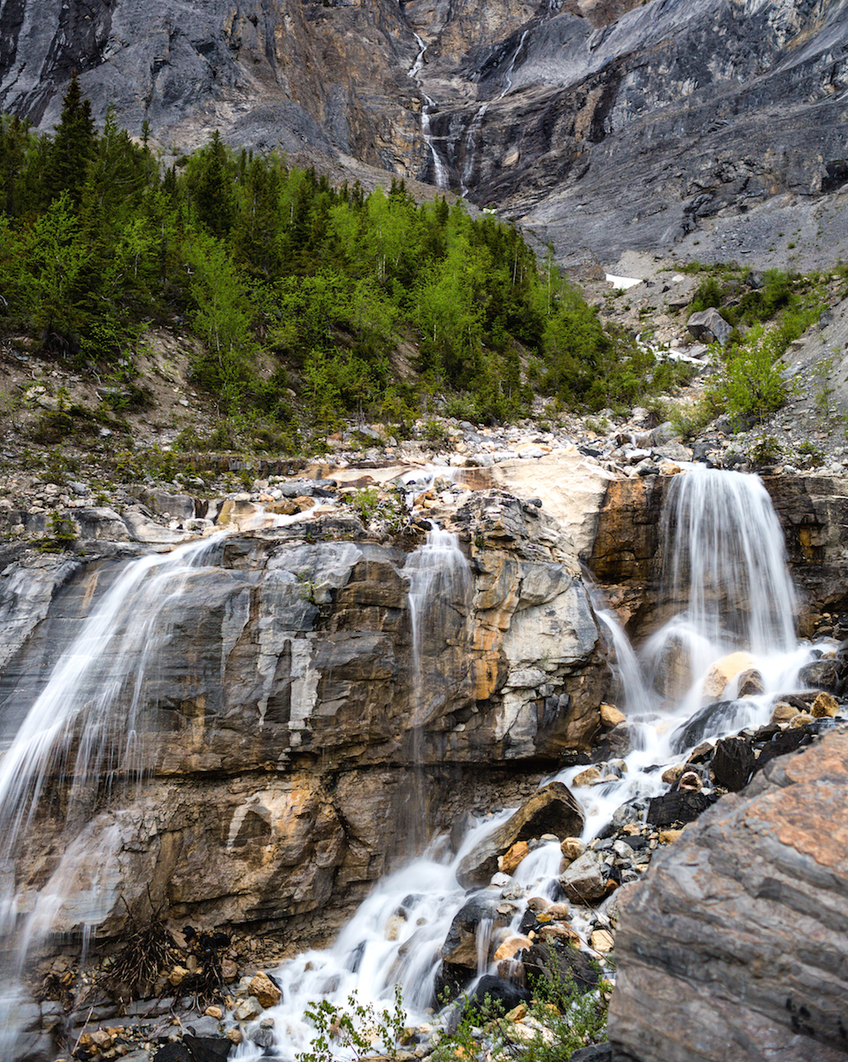 I came across this ice meltwater waterfall heading outfrom Emerald Lake one morning.