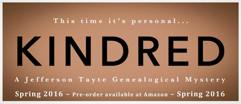 My publisher (Thomas & Mercer) has set the release date for my 5th Jefferson Tayte Genealogical Mystery! It will be out for Kindle, in paperback and audiobook formats worldwide on 12 April 2016. You can pre-order it now from Amazon in your country by clicking HERE.