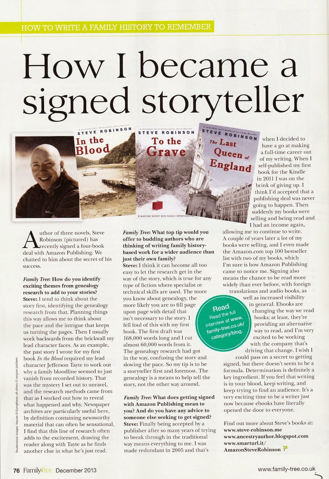 How I became a signed storytellerI talked to Helen Tovey at Family Tree magazine recently about my transition from independent author to being a signed author with Amazon Publishing. Helen asked some great questions about what it means to me, as well as how I go about writing my genealogical mysteries.