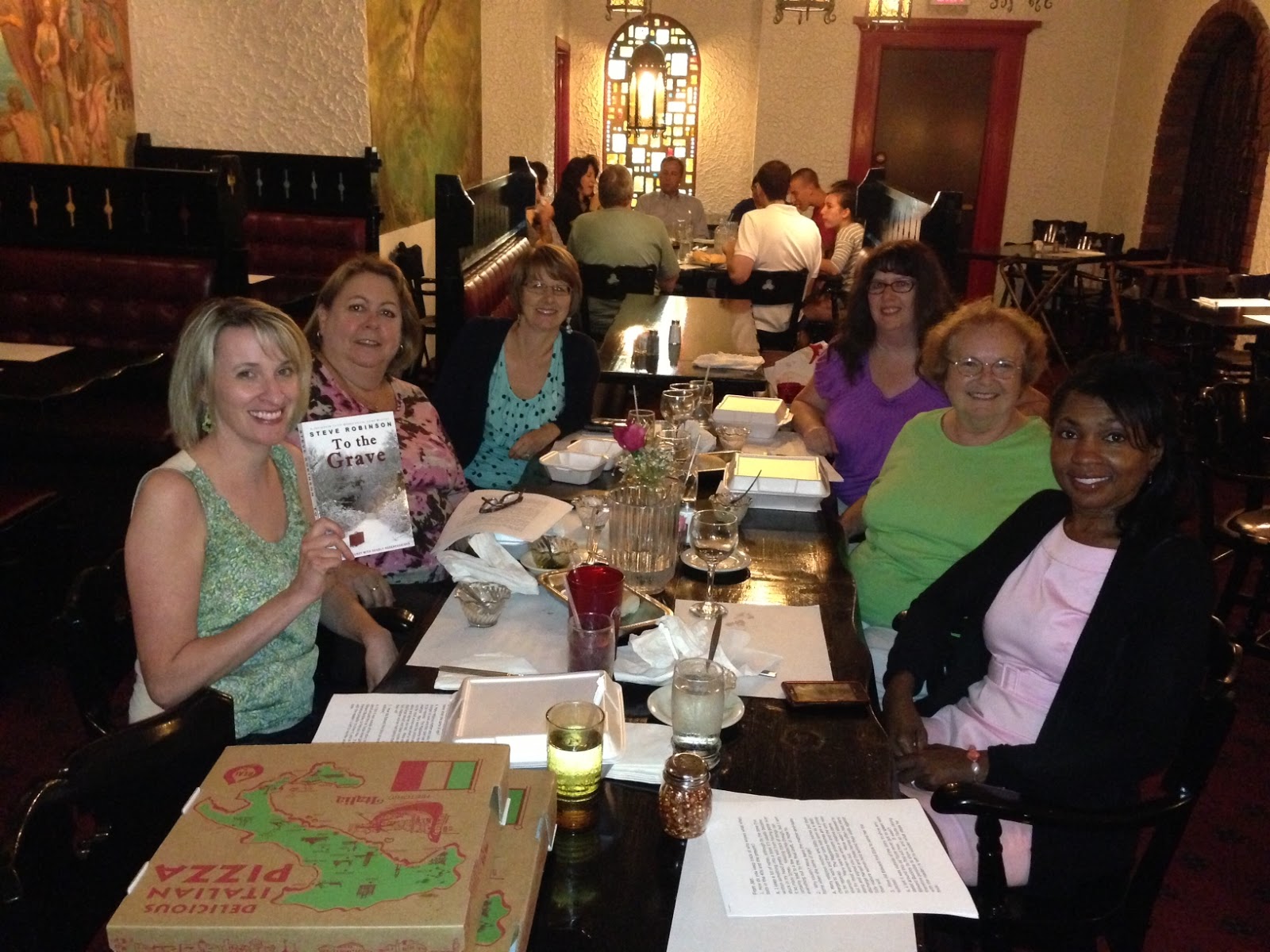 Overreaders AnonymousOne of the great things about being a writer is the interaction I enjoy with my readership, and for me it doesn't get any better than when I receive an email from someone to say that their book club is going to read one of my books. This happened recently when Alice from Rockford, Illinois contacted me to say that their book club, 'Overreaders Anonymous' was going to be reading To the Grave, and she asked if I would answer a few questions afterwards. I said I'd be very happy to, and with the book club's kind permission I've included a photograph of the group that Alice sent me afterwards. In one of her emails, Alice told me that Rockford Illinois was listed in Forbes as the third most miserable American city. I think they must have got that wrong. It looks great to me. :o)A big THANK YOU to the 'Overreaders Annonymous' book club - where every member of the group serves as president, so that whenever anyone dies their obituary will read "She was president of her book club." From left to right they are Alice, Pat, Helen, Mary, Jan and Martrice. One other member, Kathy, couldn't make it.