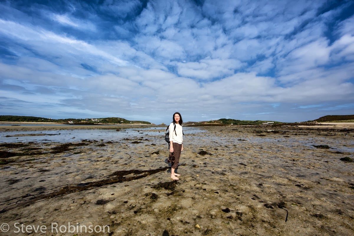 Mrs R on the seabed between Tresco and Bryher. The extra low tide is caused by an astrological event called syzygy (25 point Scrabble score), which occurs when the Sun, the Earth and the Moon are in alignment, making it possible to walk to the neighbouring island of Bryher for a limited time. Very cool!