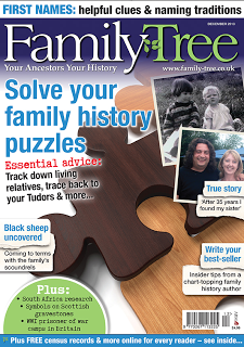 The December issue is out now and contains some great features including 'How to trace your living relatives' and 'How to write a family history to remember.' There's also a piece that was of particular interest to Jefferson Tayte called 'understanding gravestones - the symbolism of Scottish memorials.' Did you know that it's possible to tell the former profession of someone by the symbols on their headstone? Very useful for directing your search to the right apprenticeship records for example. It's also a great way to link research when writing fictional genealogy-based mysteries, and very useful to know when tracing real-life ancestry. You can read the full Family Tree magazine interview 'Becoming a best-selling storyteller' by following this link to Family Tree Magazine Online