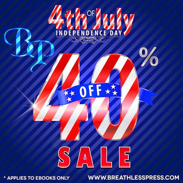To celeberate the 4th of July, and a batch of new releases today too, Breathless Press are offering you 40% off their ebooks. Grab 'em fast HERE! This also means you can pre-order my upcoming new SciFi romance novella Tethered at the discounted price of $2.39 from HERE!