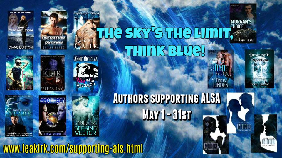 Looking for Blue skies and smooth sailing to cure ALSMay is ALS Awareness Month and twelve sci-fi/paranormal/time-travel romance authors will be donating 25% of their May book sales to the National ALS Association (including me)! Help us raise money to s...