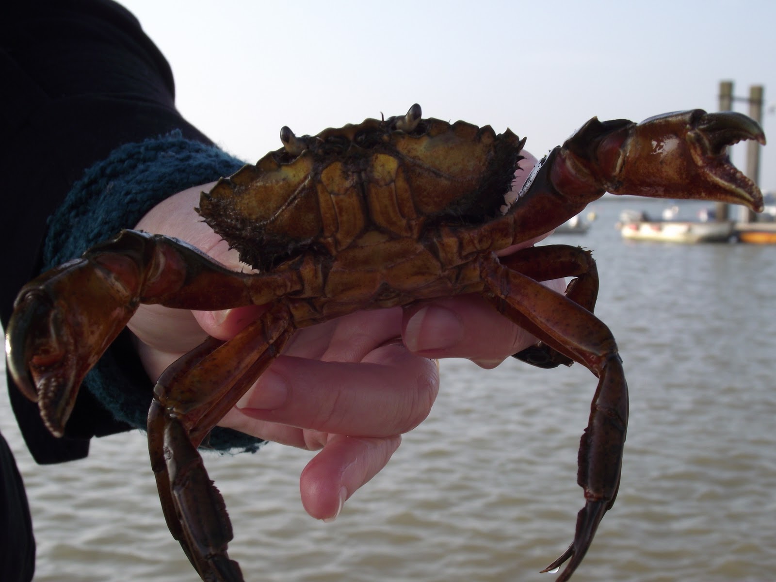 Mersea Island, on the coast of East Anglia, might be more famous for its oysters (one of the reasons the Romans invaded Britain way back when) but for us it's the best place to go crabbing. I don't know if it's something done anywhere else in the world, but I grew up with it as a child. I can remember my husband's scepticism when I told him about it, but the stunned look on his face the first time we went together and I repeatedly pulled crab after crab out of the water is something I'll always remember. :)