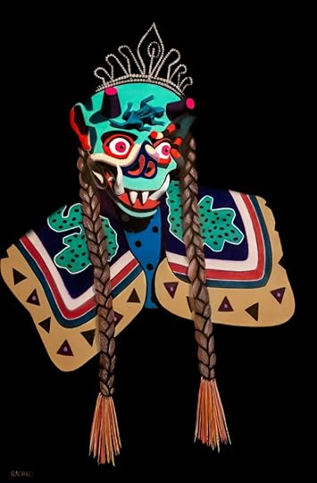 I try to select intense, vibrant colors that are exciting to look at, that work well in relationship to each other, and that will grab the viewer. Sometimes I deliberately choose colors for their symbolic meanings. For example, I selected a dark purple for the alternating triangles (the ones with the pink dots above) in “Overlord” because purple denotes royalty.
