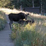 The question reoccurred to me later in the week when we went on an easy family hike at Brighton Ski Resort, searching for four lakes: Mary, Martha, Catherine and Dog lakes. We started early, and there were no other hikers around. At the very beginning of trail, our way was blocked by a cow moose and her calf. They were leisurely munching away at grass just off the trail. They paid us little heed, and after watching them for a while, we slowly approached them to encourage them to move on.