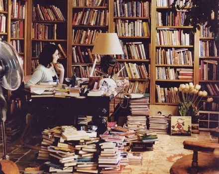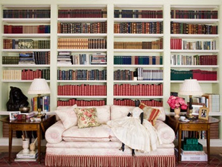 It doesn't measure up to these celebrity library shots, culled from here, belonging (left to right, top to bottom) to Oprah Winfrey, Nigella Lawson, Agatha Christie, and Diane Keaton. But it's ours.