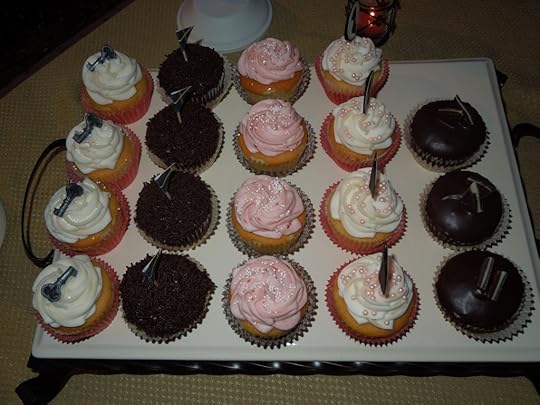 Well, there is this absolutely amazing new cupcake shop right down the street from where I decided to hold the launch, and if I'd been celebrating AUSTENTATIOUS hitting the New York Times Bestsellers List or the AUSTENTATIOUS Hollywood premiere, I could probably have overlooked the $2.75 a cupcake price. But I wasn't, and I couldn't, so my next plan was get cupcakes from Target. Before you judge…consider whether you've ever had a Target cupcake before. Because they are freakin' delicious. Even if you're not a fan of the sugar-sweet lard frosting (I totally am!), the vanilla cupcakes in particular are simply lovely: moist, light, and delicious. But I got told, in slightly couched terms, that I'm a cupcake redneck, and that I'm the only one of my friends who likes Target cupcakes, the frosting in particular. (It was said very nicely and meant to be helpful. And honestly, I could only pity those poor friends who couldn't enjoy the old-fashioned wedding cake style of a Target cupcake.)
