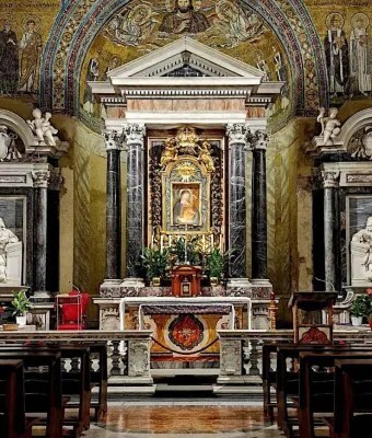 Ascoltiamo ora Papa Francesco: “Quello che vediamo quando ci raduniamo per celebrare l’Eucarestia, la Messa, ci fa già intuire che cosa stiamo per vivere. Al centro dello spazio destinato alla celebrazione si trova l’altare, che è una mensa, ricoperta da una tovaglia, e questo ci fa pensare ad un banchetto. Sulla mensa c’è una croce, a indicare che su quell’altare si offre il Sacrificio di Cristo: è lui il cibo spirituale che lì si riceve, sotto i segni del pane e del vino. Accanto alla mensa c’è l’ambone, cioè il luogo da cui si proclama la Parola di Dio: e questo indica che lì ci si raduna per ascoltare il Signore che parla mediante le Sacre Scritture, e dunque il cibo che si riceve è anche la sua Parola. Parola e Pane nella Messa diventano un tutt’uno, come nell’ultima Cena, quando tutte le parole di Gesù, tutti i segni che aveva fatto si condensarono nel gesto di spezzare il pane e di offrire il calice, anticipo del Sacrificio della croce, e in quelle parole: Prendete, mangiate, questo è il mio corpo; Prendete, bevete, questo è il mio sangue.”