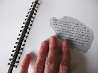 Por fin: mi pequeño retoño hecho de vísceras, cartoncillo bigris de1350 gr. y papel cyclus de 100 gr. El hijo número 13 de la familia Troquel. Viernes. Echar de menos. Moder la piel alrededor de la herida. Epidermia.