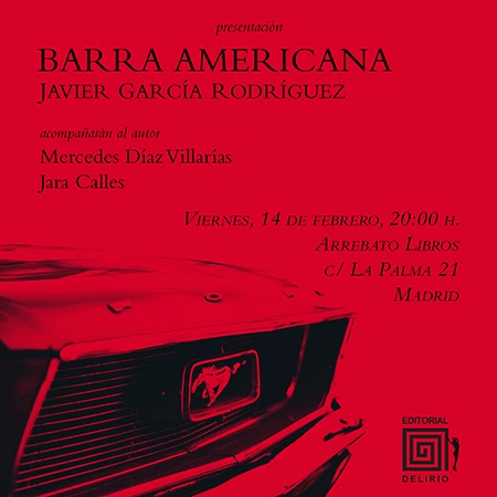 Delirio aka Libros cuadrados como puños reedita Barra americana , un relato posmoderno del medio oeste americano escrito por Javier García Rodríguez aka amigo, mentor, nombrador, poeta, profesor universitario, padre.