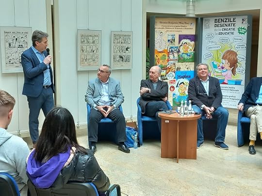 Bucurie mare, atât pentruadulții, cât și pentru copiii prezenți la întâlnirea cu benzile desenate,miercuri, 15 mai 2024, la Biblioteca Națională, ale cărei spații - Atrium, SalaMircea Eliade și American Corner București - au fost neîncăpătoare pentru numărulmare de iubitori de artă grafică și desen.