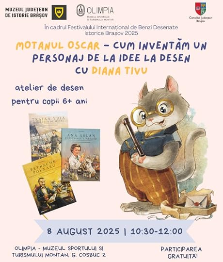10:30-12:00 Atelier de desen pentru copii cu Diana Tivu,„Motanul Oscar - cum inventăm un personaj de la idee la desen”, vârstarecomandată 6+ ani