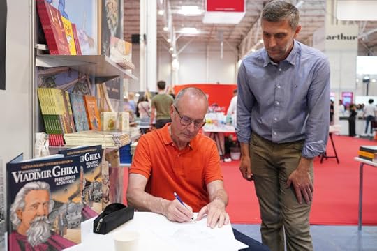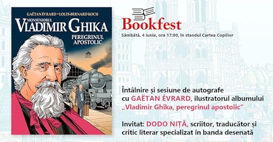 Sâmbătă, 4 iunie, la ora 17,00, la standul editurii Cartea Copiilor, avem o ocazie unică de a ne întâlni cu desenatorul tulburătorului album Vladimir Ghika, peregrinul apostolic, belgianul Gaetan Evrard. Așa cum știți, artiștii BD francofoni desenează dedicațiile lor, așa încât aveți acum ocazia unică de a avea albumul personalizat cu un frumos desen pe numele dvs.