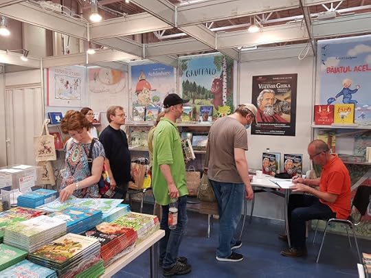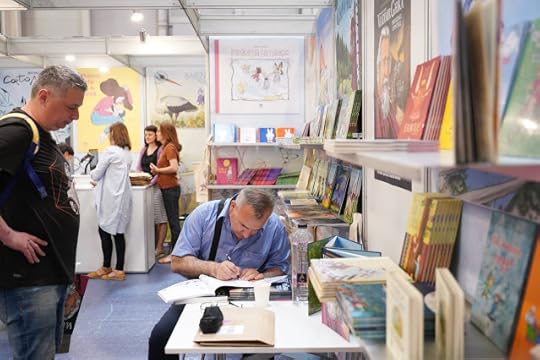 Gaetan Evrard a desenat zeci de dedicații pe albumul Vladimir Ghika, la standul editurii Cartea Copiilor.