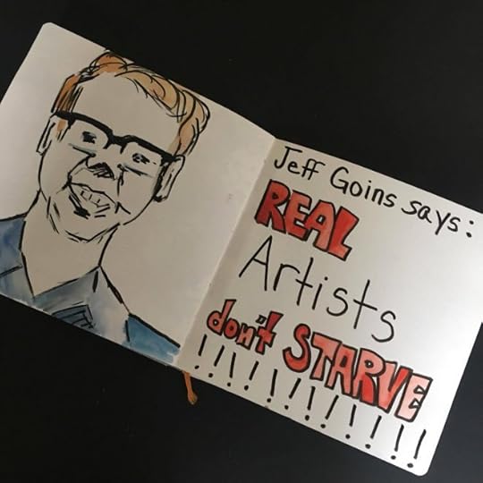 Then she went and created an amazing piece of sketch note artwork that said, “Jeff Goins says… Real artists don’t STARVE!!!”