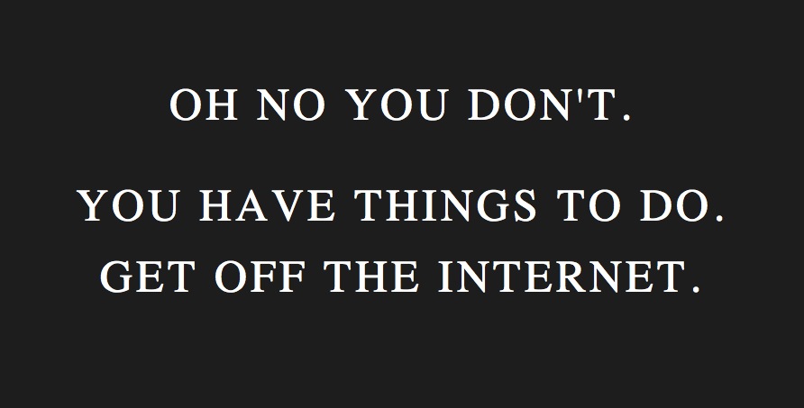 So don't make me tell you again! If you have things to do today, then my suggestion is you get your boot off the internet and do them!