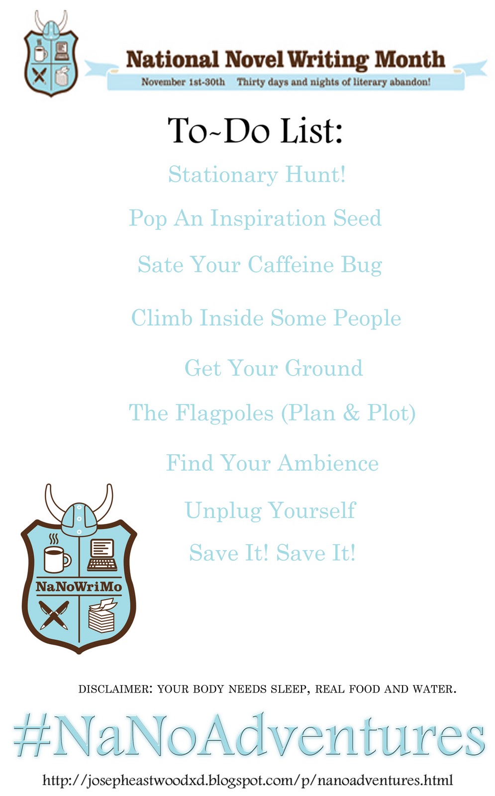It's now only 8 Days until NaNoWriMo! 8 days now until the big day! And because I like to do my lists, I'm going to compile one for you guys!