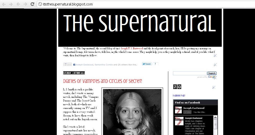 I plan to write about the shows, Supernatural, The Secret Circle, The Vampire Diaries, and many more when shows start popping up. I'm also going to be using this second blog as a place of shared research, such as posting about witches, werewolves, vampires etc. and hopefully more different types of supernatural creatures and beings. I want 'The Supernatural' to be a blog where I don't tell people what I did today, or this is how I overcame such a thing like this blog, but I want this to be more informative---although this blog is informative, I want it to focus on supernatural/paranormal things.
