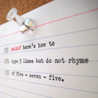However, for the purposes of this little exercise, let's say that a haiku is 3 lines, 5-7-5 syllables respectively and do not rhyme.