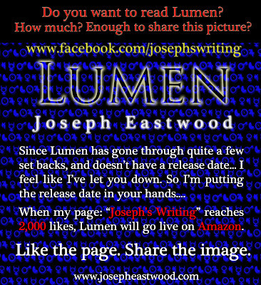 By this, I mean, when my page "Joseph's Writing" reaches 2,000 LIKES! I will publish Lumen!