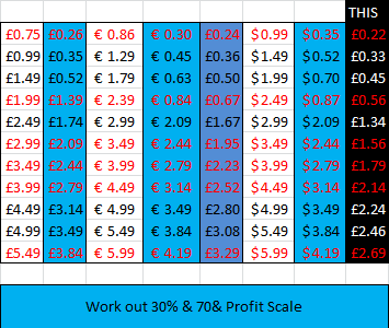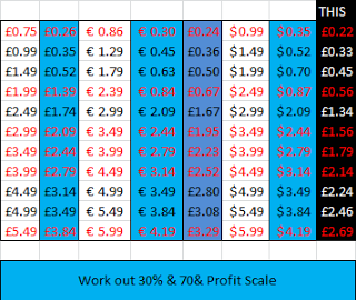 I created this chart with 3 currencies as I'm from the UK and at the end everything needs to be turned into pounds and it's good to know I'm pricing the eBook at similar prices across all of Amazon's Kindle stores. Yes, it might look a little bit excessive, although I've been told that I should have gone all the way up to $8.99 etc. (I felt that would have been excessive).