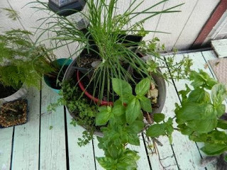 I love growing things. There isn't much that makes me happier then planting seeds and nurturing plants. This year, I decided I wanted to start growing a lot of the herbs we use in our kitchen. I bought the plants to start with, and had fun selecting three pots that we already had to make this fun herb garden.