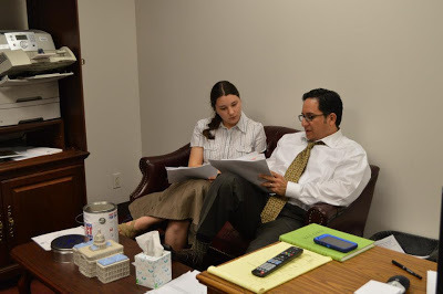 Out office is really busy because my boss is on the Appropriation Committee which handles all the money for the state. This means if often spends most of his day in meetings that can last up to 8 hours
