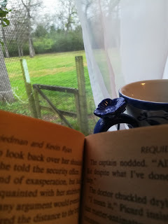 Spring is in full force here. It feels like every time I go outside, there is more green, more flowers, and more stuff growing in the garden. We've also had some rain. One of the rainy days, I enjoyed some hot tea and a good book.