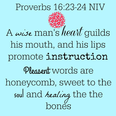 I recently was reminded how important the way I speak matters to God. Some unkind and discouraging speech patterns have slipped in. Started to read in my Bible about how God wants me to talk and I found myself in the book of Proverbs. There is a lot in that book about how we are to talk. I started underlying.