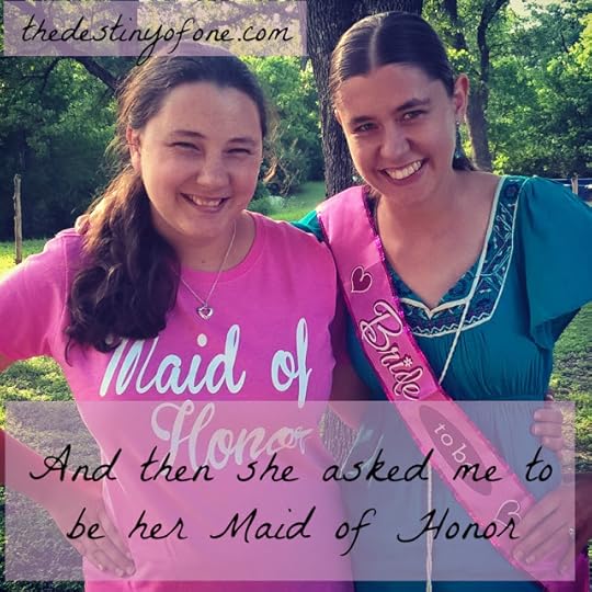 My sisters bought team bride shirts for all of us... except mine came and it had Maid of Honor on the front. I was really touched. I am excited to be standing up for my sister, my friend, my heart as her deepest desire, greatest wish, and largest dream comes true. When I cry on the wedding day, those will be tears of joy. Today's tears, those tears are for my lose. I am going to miss what has been even as my heart rejoices for what will be.
