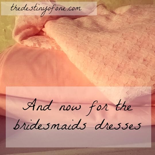 After my emotional moment (or ten), I became excited with my sister as she picked out a pretty cotton fabric that was the right color. Now, I know what some of you are thinking and you would be right - cotton and weddings don't normally go together. However, when you are trying to do an inexpensive wedding in a short time (the wedding is July 22!) cotton is a good choice.
