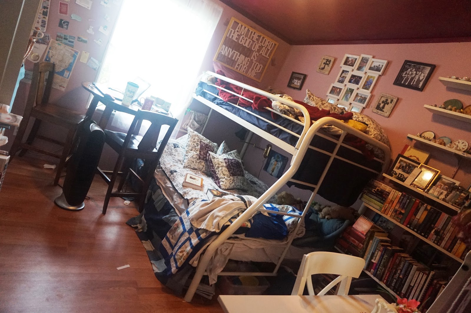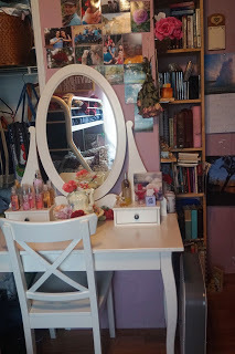 Today I wanted to do something a little different. I want to invite you into my room. I cleaned it up recently so it is actually fit to be seen. I share this room with my sister Rose. As she works in town and I spend most of the day behind my computer it can get pretty messy.